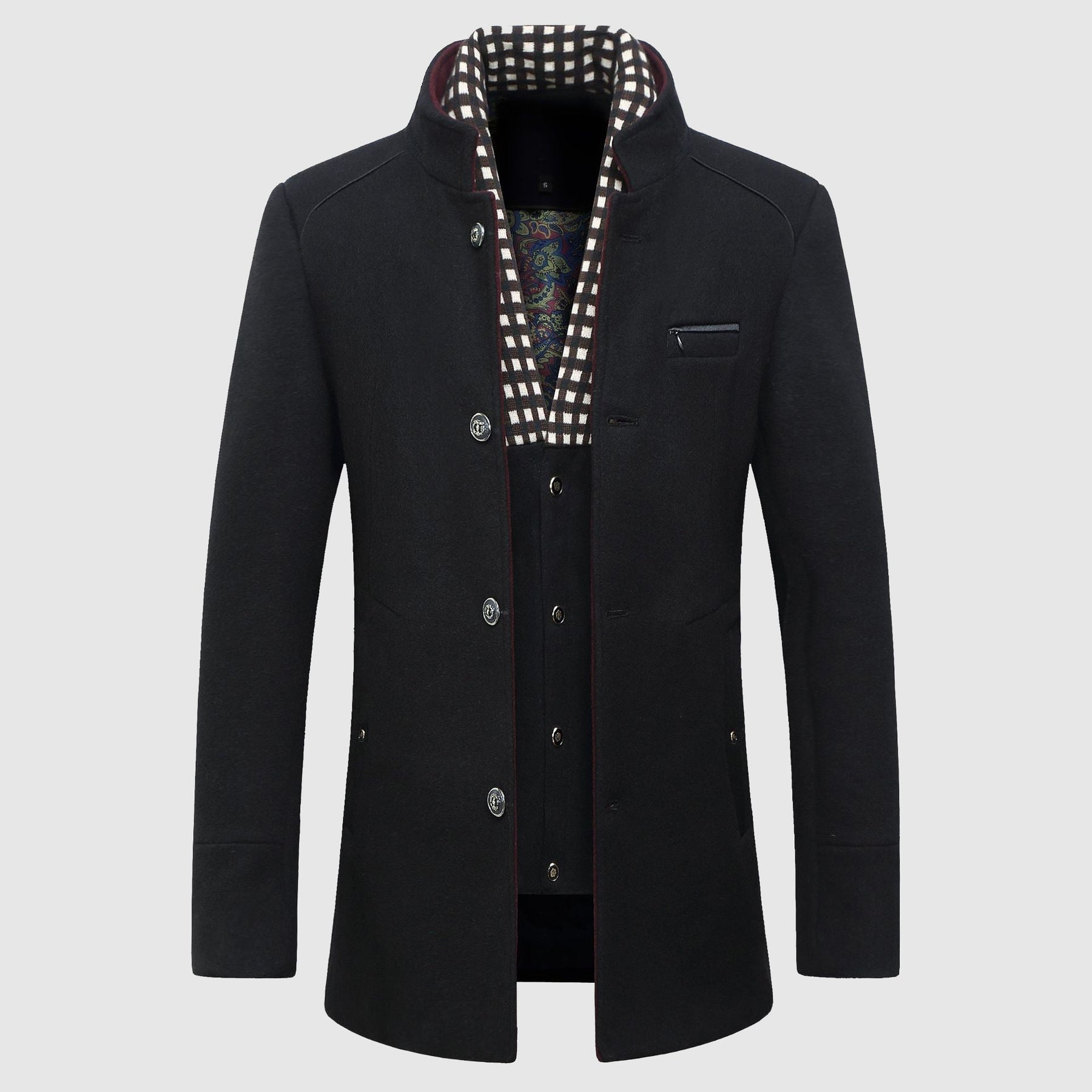 The button closure is a refined detail that not only secures the John Wellington Stockholm Wool Coat but also enhances its overall aesthetic. The thoughtfully placed buttons contribute to a sharp and tailored silhouette.